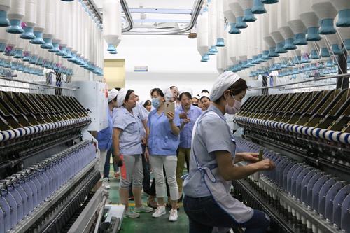 為了鞏固陜西省紡織行業(yè)2018年操作大賽成果,促進(jìn)職工綜合素質(zhì)不斷提升,助力陜西紡織技能發(fā)展。近日,陜西省紡織行業(yè)協(xié)會(huì)組織噴氣、細(xì)紗操作技能精英在各企業(yè)進(jìn)行操作巡回表演。6月4日上午,省操作交流團(tuán)一行6人在西紡集團(tuán)副廠長(zhǎng)程西樓的帶領(lǐng)下來到集團(tuán)公司,與細(xì)紗車間、織造車間員工切磋技能、交流學(xué)習(xí)。