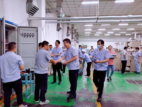 夏季高溫來臨之際,氣溫不斷升高,為保障職工安全、健康度夏,根據(jù)集團公司2021年防暑降溫工作安排,近期,集團公司集中采購了一批防暑降溫藥品及物品,并陸續(xù)發(fā)放給各部門。 7月7日,集團公司黨委書記、董事長范振華帶領(lǐng)班子成員深入各子公司、分廠進(jìn)行了慰問,把一份份防暑降溫慰問品送到了炎炎夏日奮戰(zhàn)在生產(chǎn)一線的職工手中,并詳細(xì)詢問大家工作生活等情況,叮囑大家注意防暑,勞逸結(jié)合。
