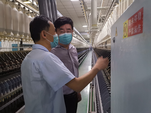 五月是企業(yè)抓生產(chǎn)、趕訂單的關(guān)鍵時(shí)期,5月4日,當(dāng)不少人還沉浸在“五一”小長(zhǎng)假的氛圍當(dāng)中,咸陽(yáng)紡織集團(tuán)生產(chǎn)車(chē)間機(jī)器轟鳴,干部職工卯足干勁,提前迎來(lái)了“五一”后的第一個(gè)工作日。集團(tuán)公司黨委書(shū)記、董事長(zhǎng)范振華帶領(lǐng)全體班子成員第一時(shí)間深入現(xiàn)場(chǎng)查看生產(chǎn)等情況。 在各子公司、分廠,范董事長(zhǎng)一行詳細(xì)了解了生產(chǎn)一線職工到崗情況、開(kāi)臺(tái)情況,深入各工序機(jī)臺(tái)弄檔查看現(xiàn)場(chǎng)溫濕度、停臺(tái)設(shè)備周期管理等情況,并安排集團(tuán)公司疫情防控辦公室對(duì)職工節(jié)日出行及節(jié)后人員到崗情況盡快排查梳理,嚴(yán)格按照疫情防控要求做好核酸檢測(cè)等跟進(jìn)管理工作。