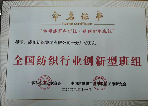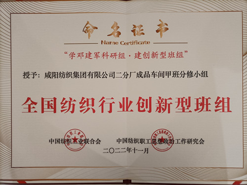 咸陽紡織集團(tuán)兩個(gè)班組被命名為“全國紡織行業(yè)創(chuàng)新型班組”