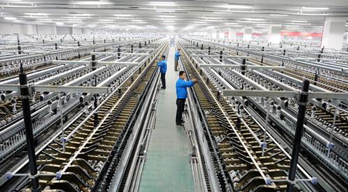 咸陽紡織集團(tuán)有限公司緊抓企業(yè)搬遷入園契機(jī),全面淘汰現(xiàn)轄各企業(yè)上世紀(jì)50年代國產(chǎn)紡織“1”代改良機(jī)、80年代國產(chǎn)FA系列“2”代機(jī),引進(jìn)了代表目前國際國內(nèi)一流頂尖水平的德國特呂茨勒清梳聯(lián)機(jī)組、瑞士立達(dá)單眼自調(diào)勻整D45型并條機(jī)、立達(dá)E66型精梳機(jī)、奧托康納粗細(xì)聯(lián)機(jī)組和粗細(xì)絡(luò)聯(lián)機(jī)組以及日本村田21C-S型自動絡(luò)筒機(jī)、津田駒TTS10S 型漿紗機(jī)和津田駒ZAX 9100型織布機(jī)等技術(shù)裝備,設(shè)備新度系數(shù)高達(dá)0.98。紡紗設(shè)備100%實(shí)現(xiàn)粗細(xì)聯(lián),57%實(shí)現(xiàn)粗細(xì)絡(luò)聯(lián),織造設(shè)備全部實(shí)現(xiàn)無梭化,生產(chǎn)管理系統(tǒng)實(shí)現(xiàn)了信息集成化,整體設(shè)備裝備水平位居全行業(yè)前列。
