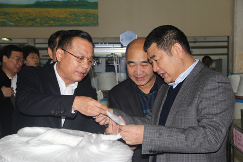 11月13日,市紀委書記權(quán)王軍在市國資委主任魏強等陪同下來西北二棉檢查創(chuàng)文工作。公司董事長康忠民、黨委書記張新華等領導熱情迎接權(quán)書記一行。 檢查中,權(quán)書記一邊了解公司生產(chǎn)經(jīng)營情況,一邊詢問創(chuàng)文工作開展情況。當看到公司生產(chǎn)區(qū)濃厚的創(chuàng)文宣傳氛圍,看到辦公樓前醒目的標語、櫥窗里圖文并茂的創(chuàng)文圖片及豐厚翔實的創(chuàng)文資料;當走進車間,看到干凈清爽的生產(chǎn)環(huán)境,整齊劃一的機臺隆隆作響時,權(quán)書記對西北二棉的生產(chǎn)及創(chuàng)文工作給予高度肯定,認為公司領導能高度重視,重點部署;緊盯目標,創(chuàng)建活動開展扎實有效,做到了生產(chǎn)經(jīng)營和創(chuàng)文工作“兩手抓,兩不誤”,他希望西北二棉能持之以恒,在搬遷入園后的創(chuàng)文工作中再上新臺階。